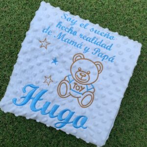 mantita cuento oso toy azul+(babero de regalo personalizado)
