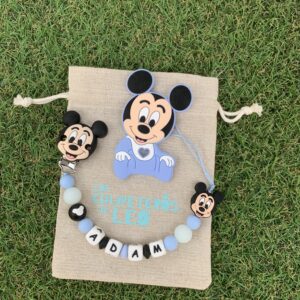 chupetero persnalizado+mordedor mickey azul pastel